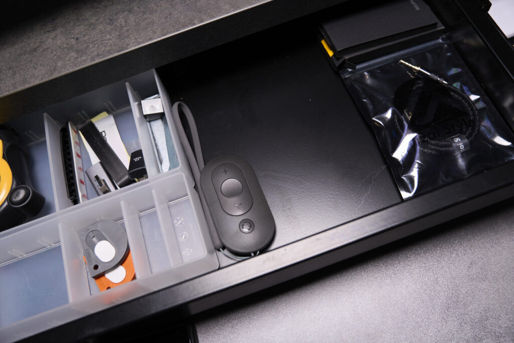 引き出し内のコンパートメントは、無印良品のトレーがちょうどよく結構気に入ってる。