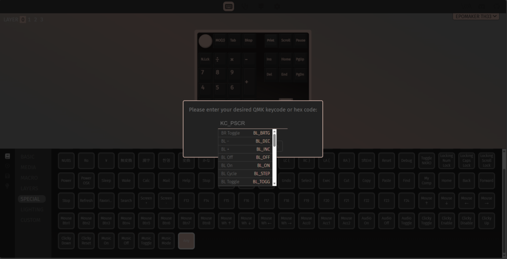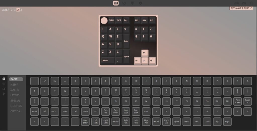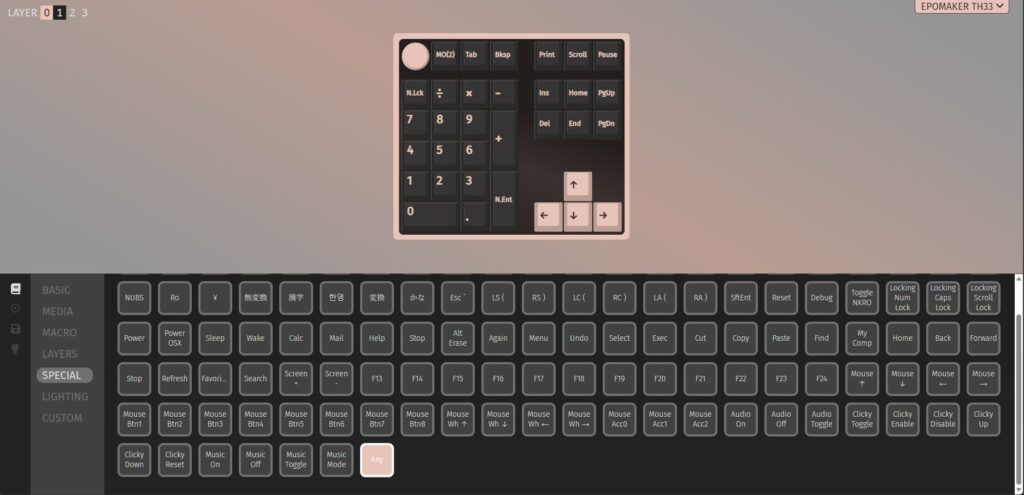 本機はVIAで、キーマップやレイヤー、マクロなど編集・設定可能です。