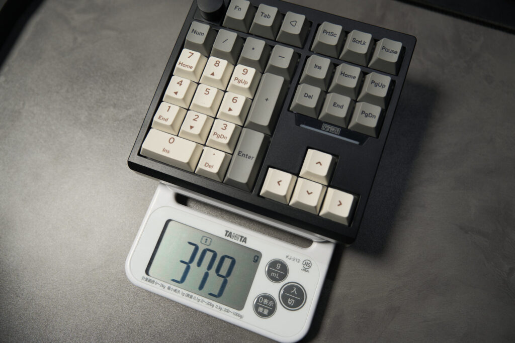 重量は379gと、持ち運びには向かないサイズと重さ。