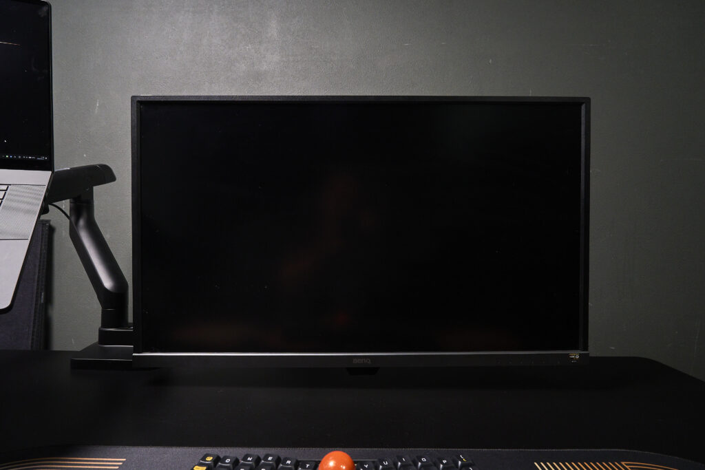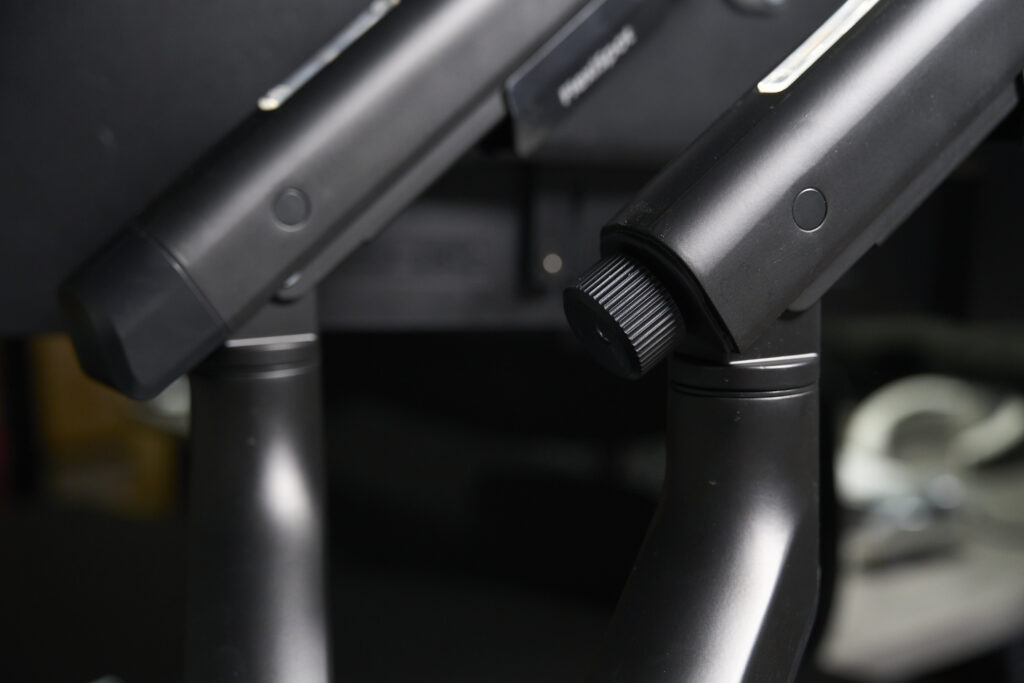 最近のモニターは32インチでも案外軽いので、ダイヤルでアームの調整を軟らかめに設定すると