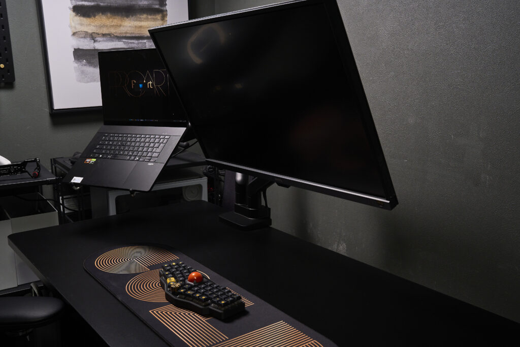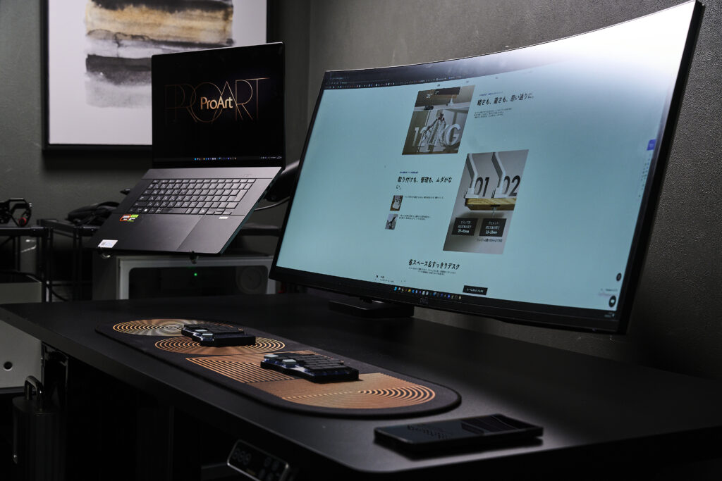 お馴染みの5K2Kモニター。39.7インチの曲面ウルトラワイドモニターを設置してみました。