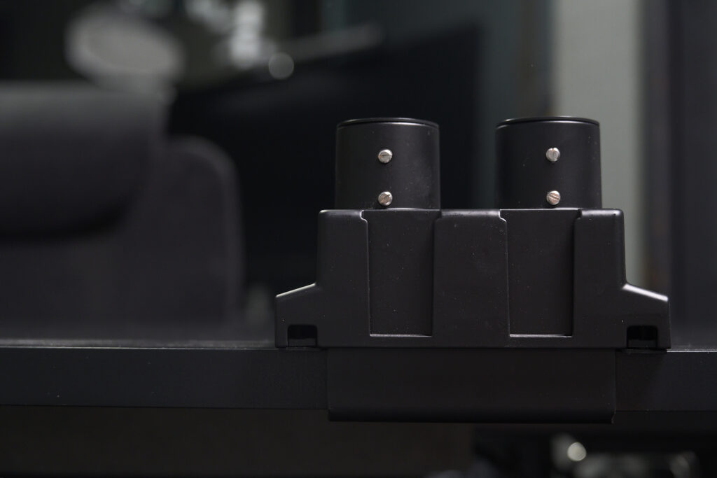 本機は、デスクの天面側からボルトを締め込むことによりクランプする機構で