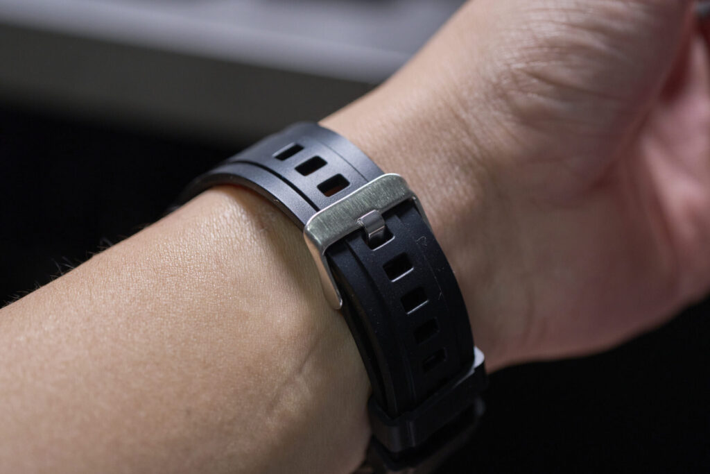 アウトドアやフィットネスなどには、シリコン製のバンドが同梱されているので