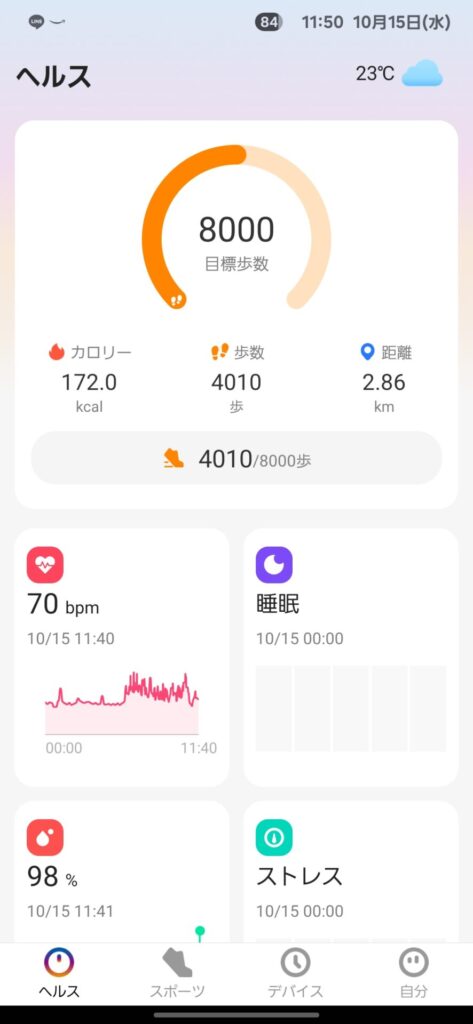 ヘルスケア周りのパラメータもわかりやすく表示してくれます。