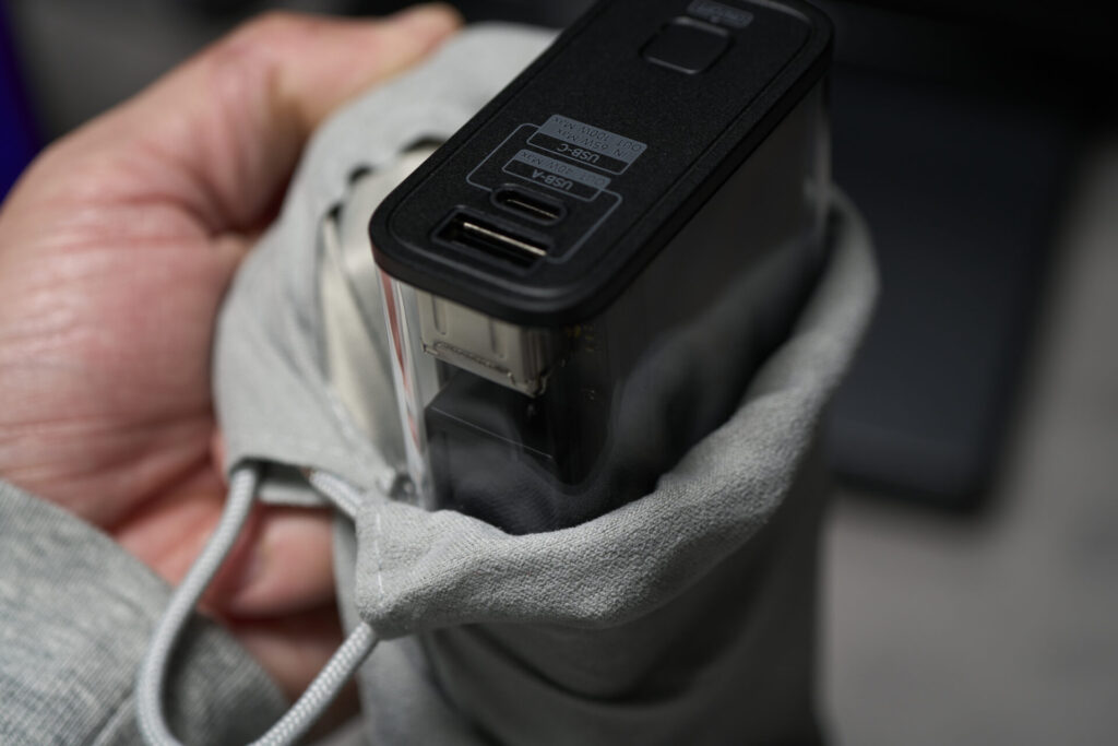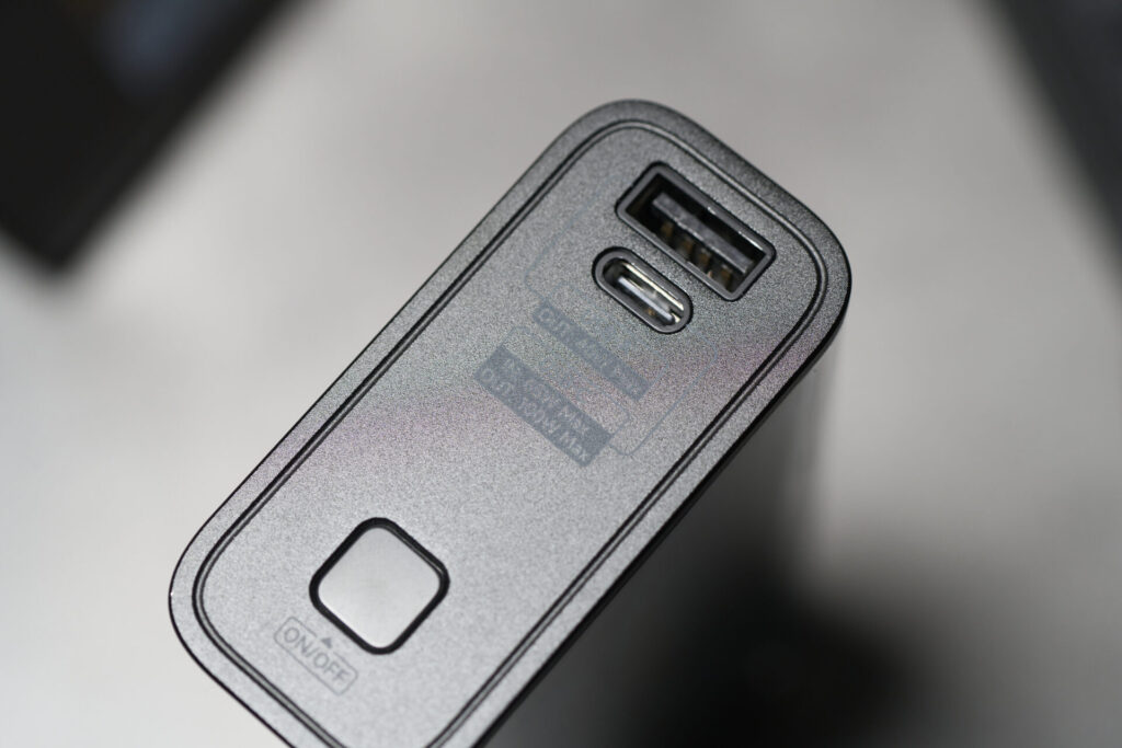 筐体は、20,000mAhのモバイルバッテリーなのでコンパクトでも軽くもないものの