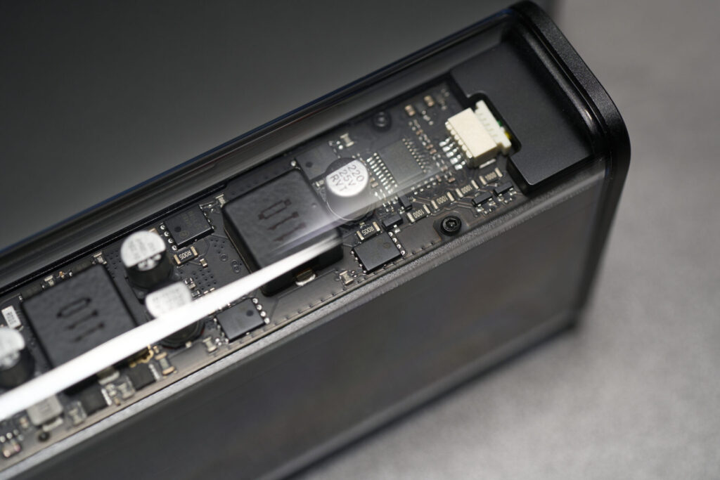 細身でスタイリッシュな筐体に、スケルトンで基盤むき出しのデザイン。