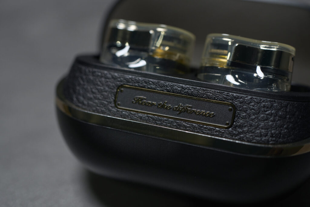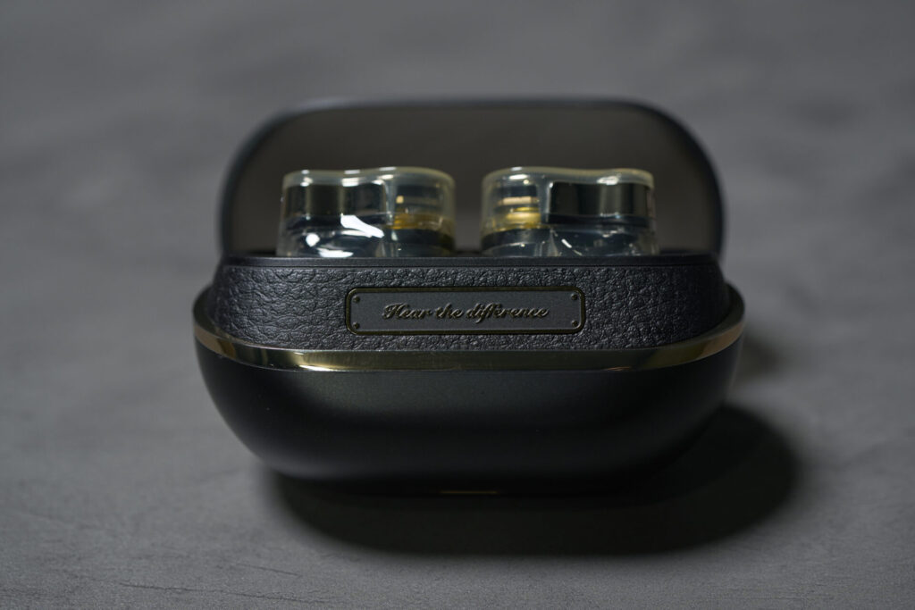 高級オーディオのようなデザインのワイヤレスイヤホン。
