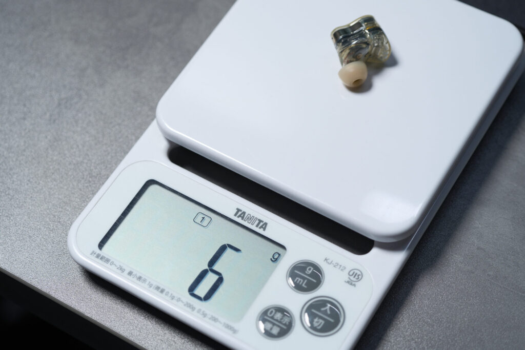 イヤホン片耳で約6g。両耳で12g。