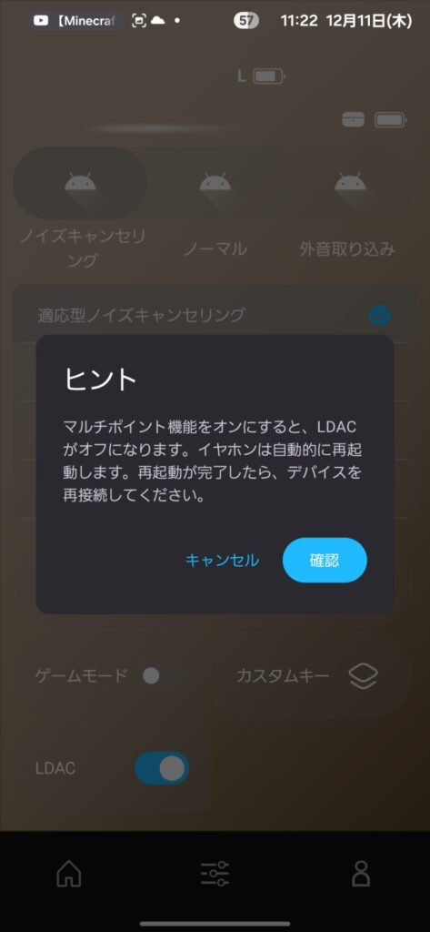 本機も、LDAC使用時にはマルチポイント接続がオフになり