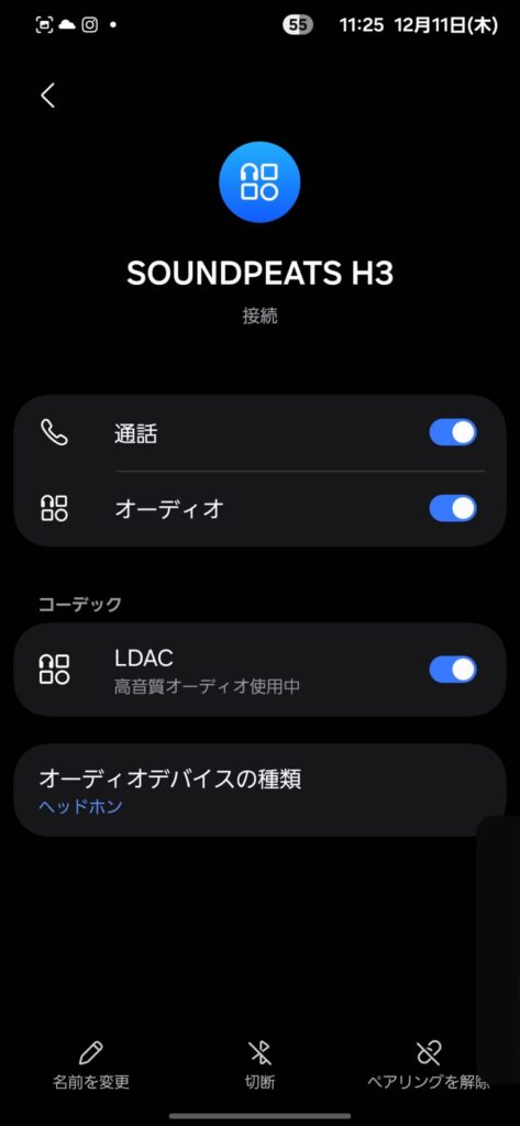 | 対応コーデック | SBC/AAC/aptX Adaptive/aptX Lossless/LDAC/LC3 |