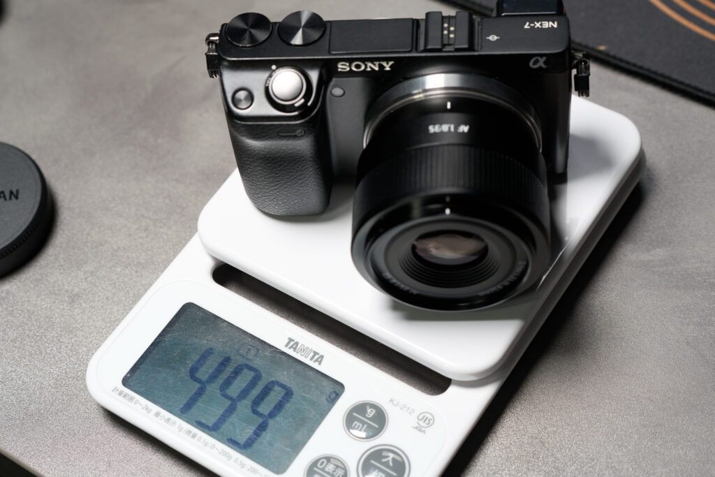 NEX-7と合わせても500gと、500mlペットボトル1本分の重量感。
